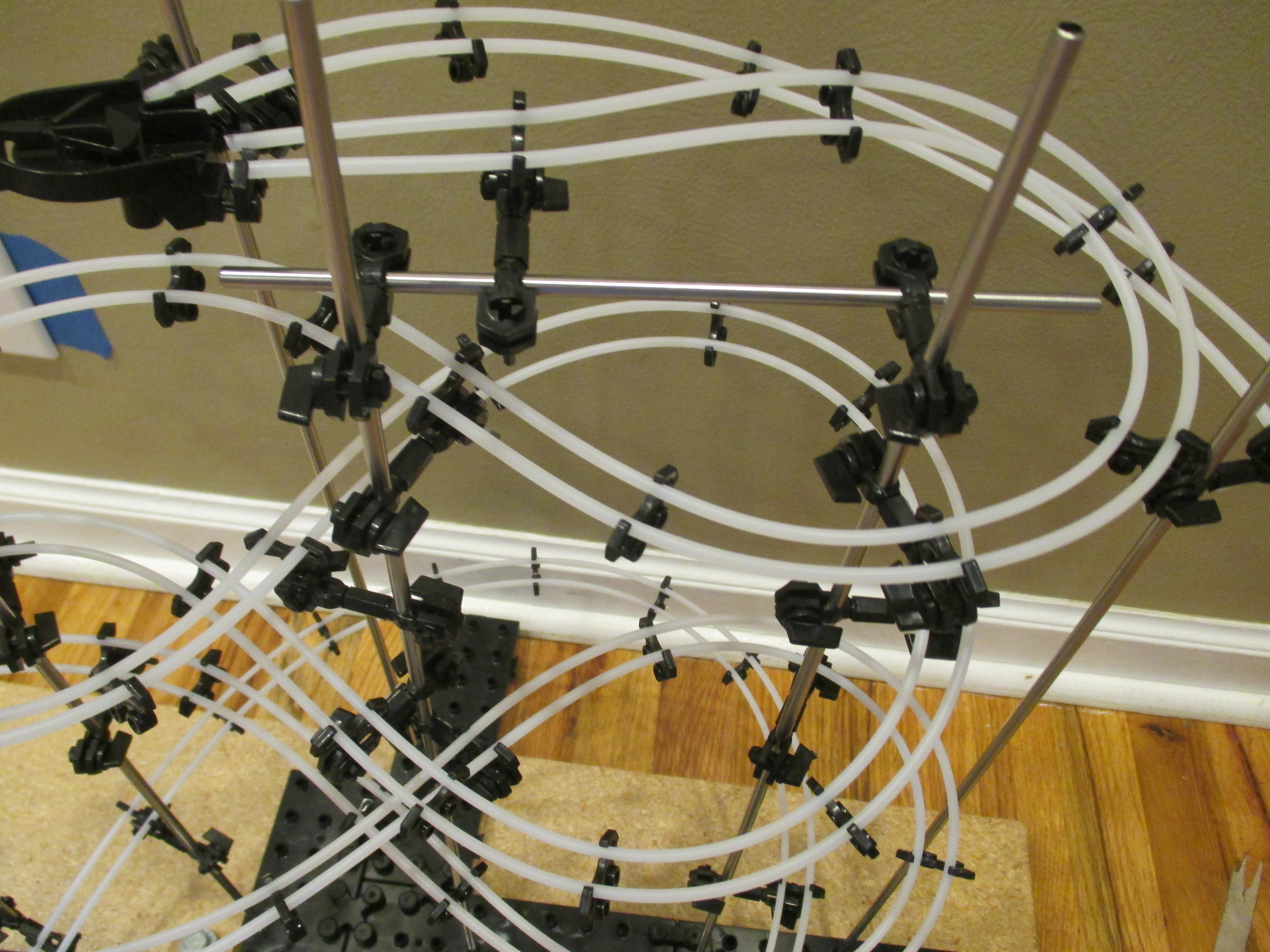 For this Spacerail ball machine, I did something I have never done before: horizontal poles! Below are the pictures of the two horizontal poles in this ball machine.